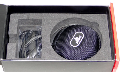 Auch die Verpackung ist im Gesamtkonzept ein wichtiger Teil: Eine dicke, stabile, mit glänzenden und matten Teilen versehene Pappbox, die die Endorphines, eine stabile Aufbewahrungsbox und Ersatz-Ohrmuscheln enthält und einfach von der Aufmachung und Haptik klar macht, dass es sich bei diesen Kopfhörern um alles andere als ein Billigprodukt handelt.