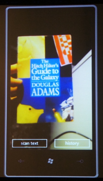 - Die Sensoren des Gerätes und die Bing-Suche: Visuelle Suche per Barcode, Cover, Musik etc. Ein Objekt wird erfasst und dann umgesetzt, dazu gehört auch die Texterkennung inkl Übersetzung per Bing Translator.